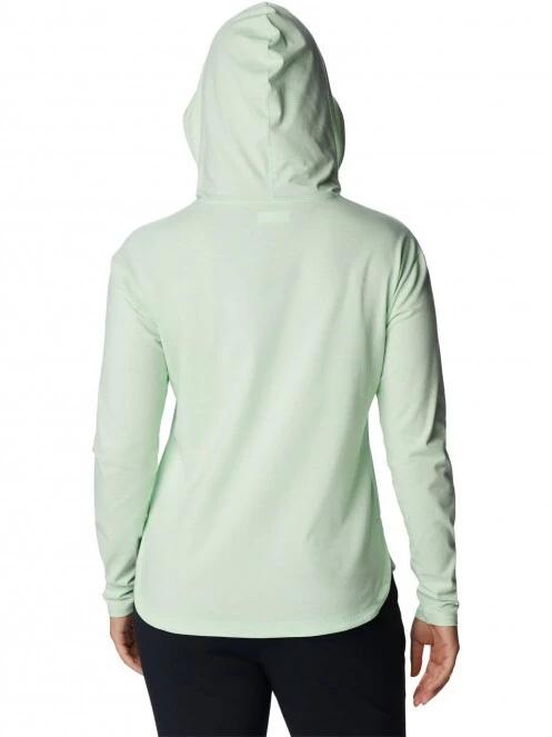 Pentru calatorii de vara, drumetii, ciclism dar chiar si in cazul bluzelor sportive alese pentru femei pentru uz zilnic este foarte important aspectul ca imbracamintea usoara si confortabila este mai importanta decat orice. Puloverul cu gluga Sun Trek, fiind un pulover sport pentru femei de la Columbia cu tesatura mixta, indeplineste perfect aceste cerinte. Tesatura are o senzatie exceptional de placuta la atingere care ofera o purtare foarte confortabila. Compozitia materialului are poliester pentru usurinta, bumbac pentru naturalete si moliciune usoara si elastan pentru flexibilitate. Recomandat ca strat superior primavara si vara, tesatura elastica confortabila a hanoracului se potriveste foarte bine si se adapteaza bine la miscarile purtatorului. De asemenea, poate fi folosit pentru o gama larga de activitati sportive in aer liber datorita tesaturii sale elastice de confort, a glugii care absoarbe vantul si a tehnologiei Omni-Wick care absoarbe si evapora transpiratia de pe piele in timpul miscarii. Tehnologia Omni-Shade protejeaza purtatorul de razele UV daunatoare ale soarelui. Tesatura sa se usuca rapid si necesita putina ingrijire. Topul sport cu croiala lejera se combina bine cu alte piese din colectia de imbracaminte outdoor Columbia pentru femei.